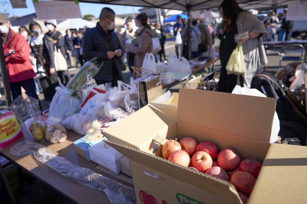 農家から直接農産物を購入できるファーマーズマーケット。出来立てのフードやコーヒーの他、海産物、焼き菓子、クラフトなど、多様な店舗が毎月40店舗以上並ぶ。