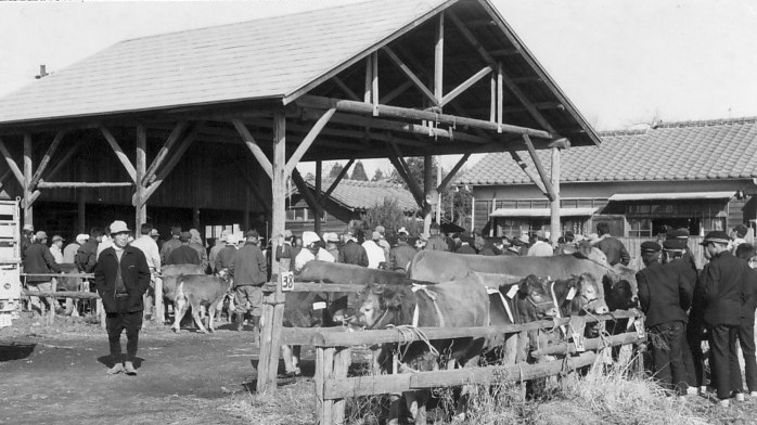 家畜市場(昭和50年頃)。酪農は副業としても盛んで、当時の農家にとって家畜は生計を営むのになくてはならないものの一つだった