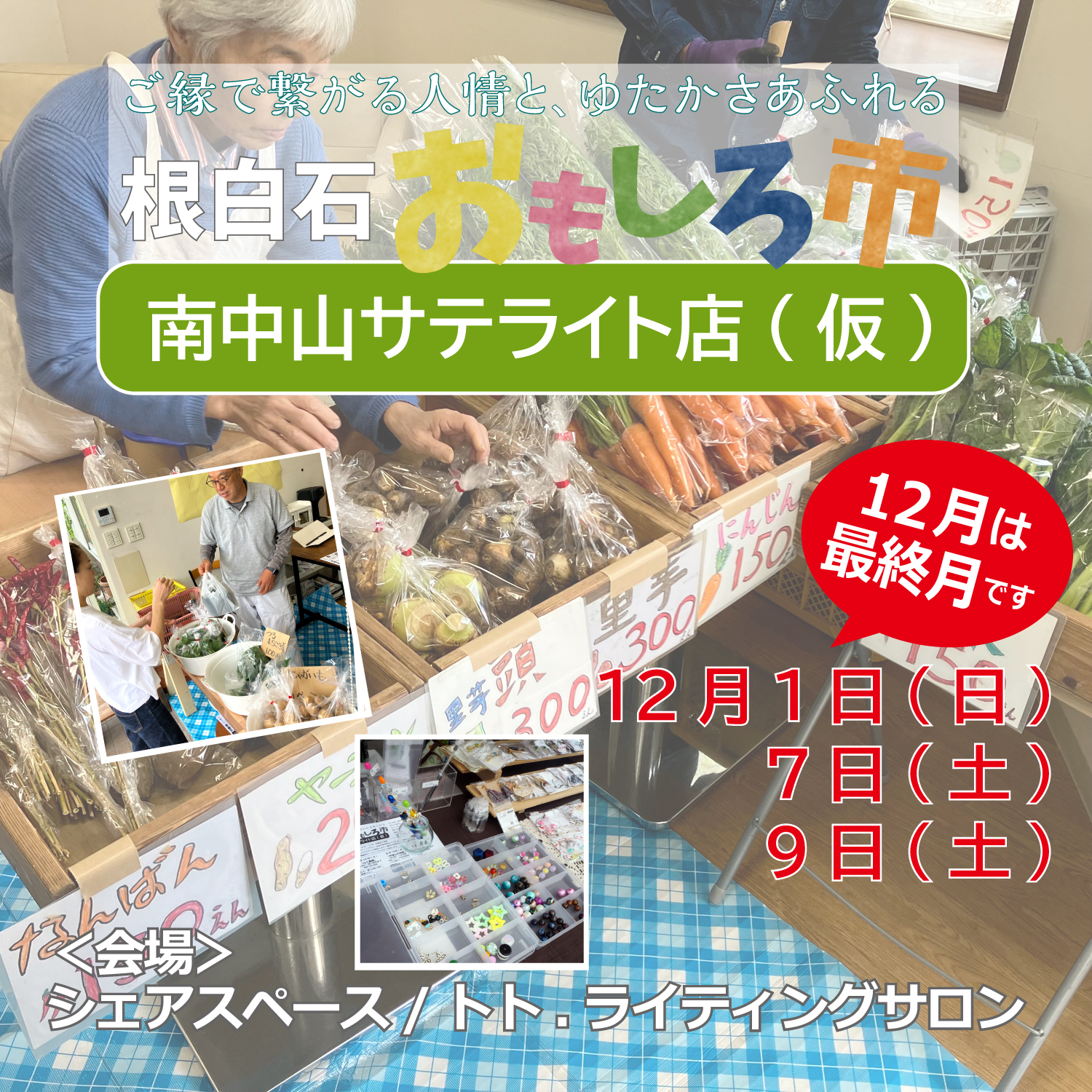 主会場「根白石おもしろ市」の方も2024年度分は12月が最終月。
