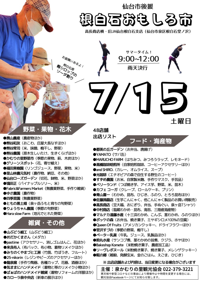 7月15日根白石おもしろ市のご案内