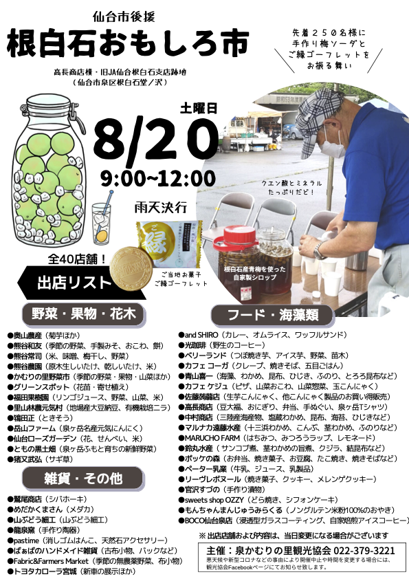 新鮮な夏野菜、泉ヶ岳産のお米、手作りのあれこれをお求めに、ぜひいらしてくださいね。